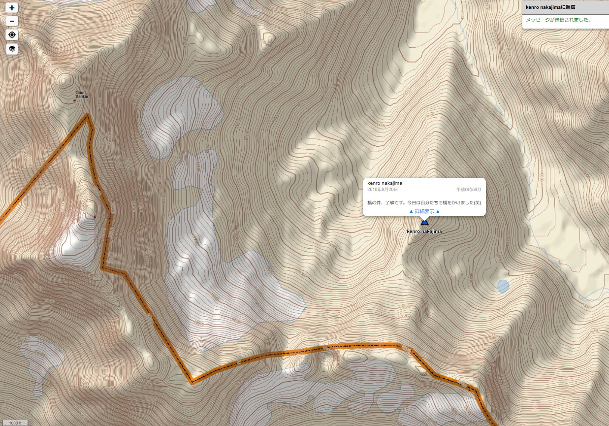 偵察を終え、無事BCの戻ったとのことです。 ご苦労様でした。早く写真が見たいですね。 ---------- Forwarded message --------- From: kenro nakajima (via inReach) Date: 2019年9月21日(土) 17:17 Subject: inReach message from kenro nakajima To: k-hikami