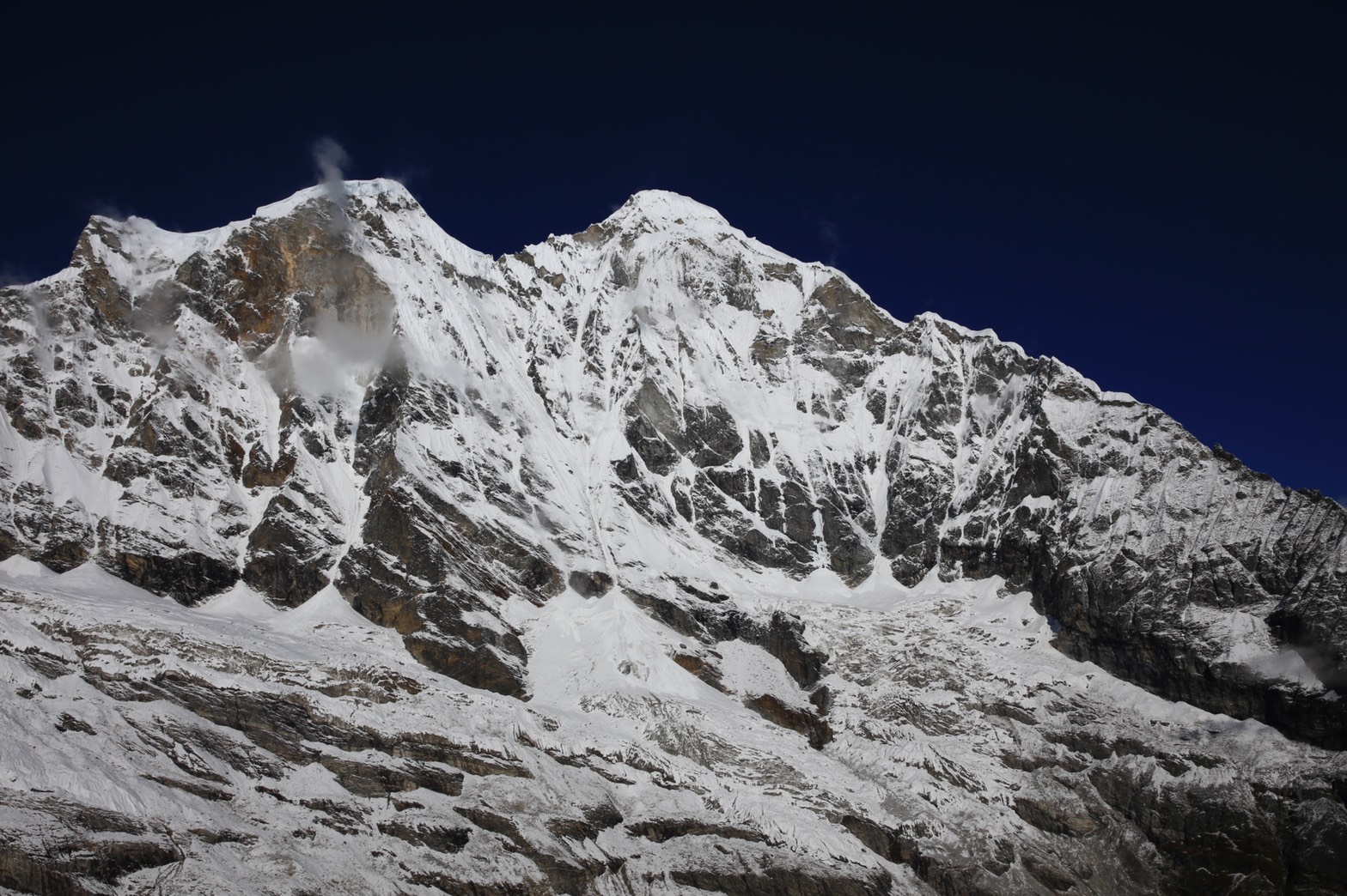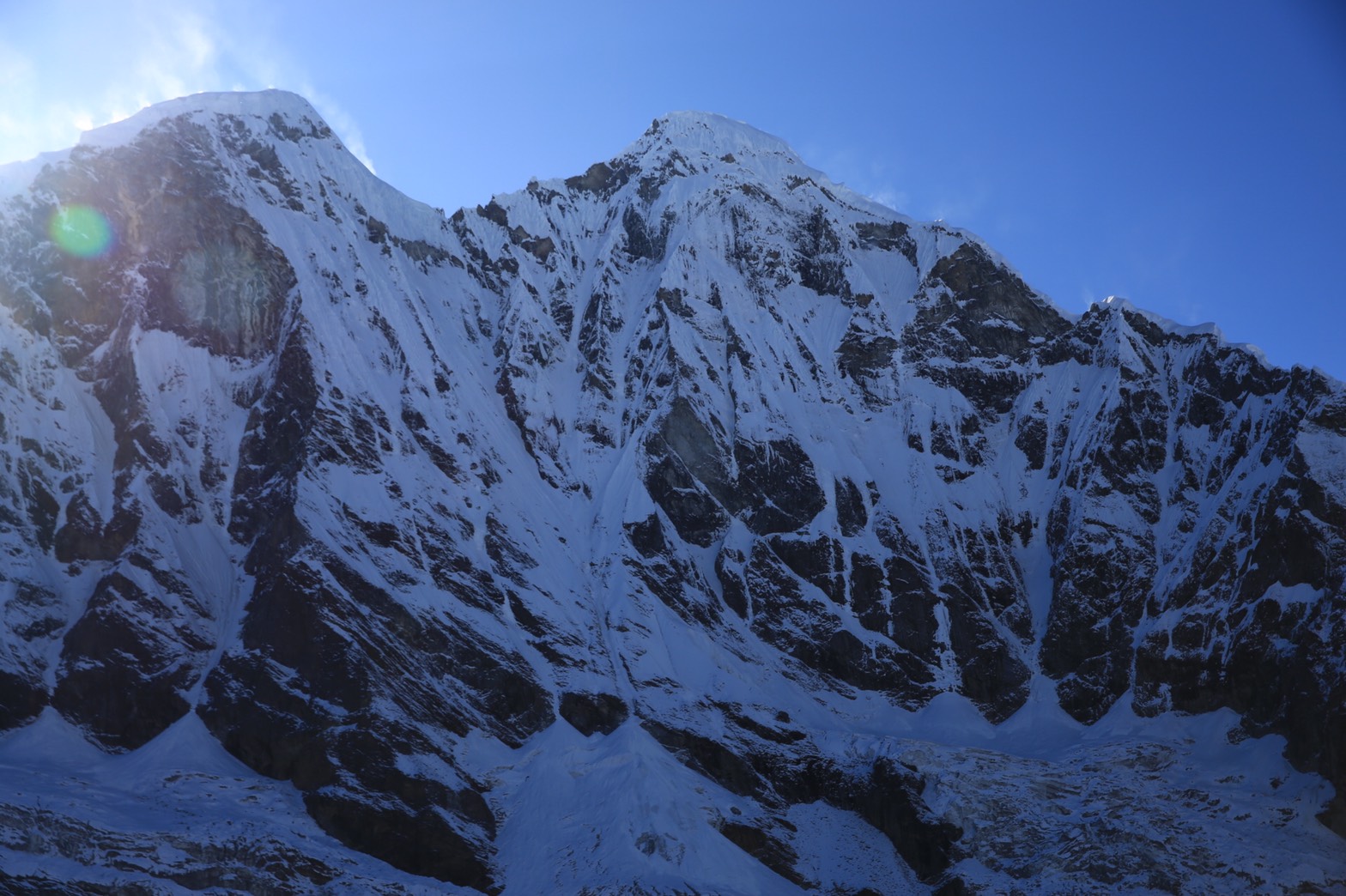 まずは偵察の目的が完遂でき何よりと喜んでいます。 早く写真を見たいですね。先日の通信014に添付された地図で東面の等高線が混みあっていることは確認していましたが写真と見較べたいものですね。 また、2016年山本大貴OBがKan Nachugo南壁を初登攀した際に、頂上からガウリサンカルを撮った写真では東面はまさに急峻な氷の壁のような印象でしたので。 2017年秋、ロールワリン山域をトレッキングした際、世界の最高峰と誤認されていたガウリサンカルはトレッキング中も、TBCへの車中らでもはっきりと見えていました。しかし南の方角から見ていたので左の尖がった主峰、右の岩の塊のような南峰が重なるように見えるため、両峰はコルを挟んで近そうに見えていました。手強い稜線でつながっているのですね。