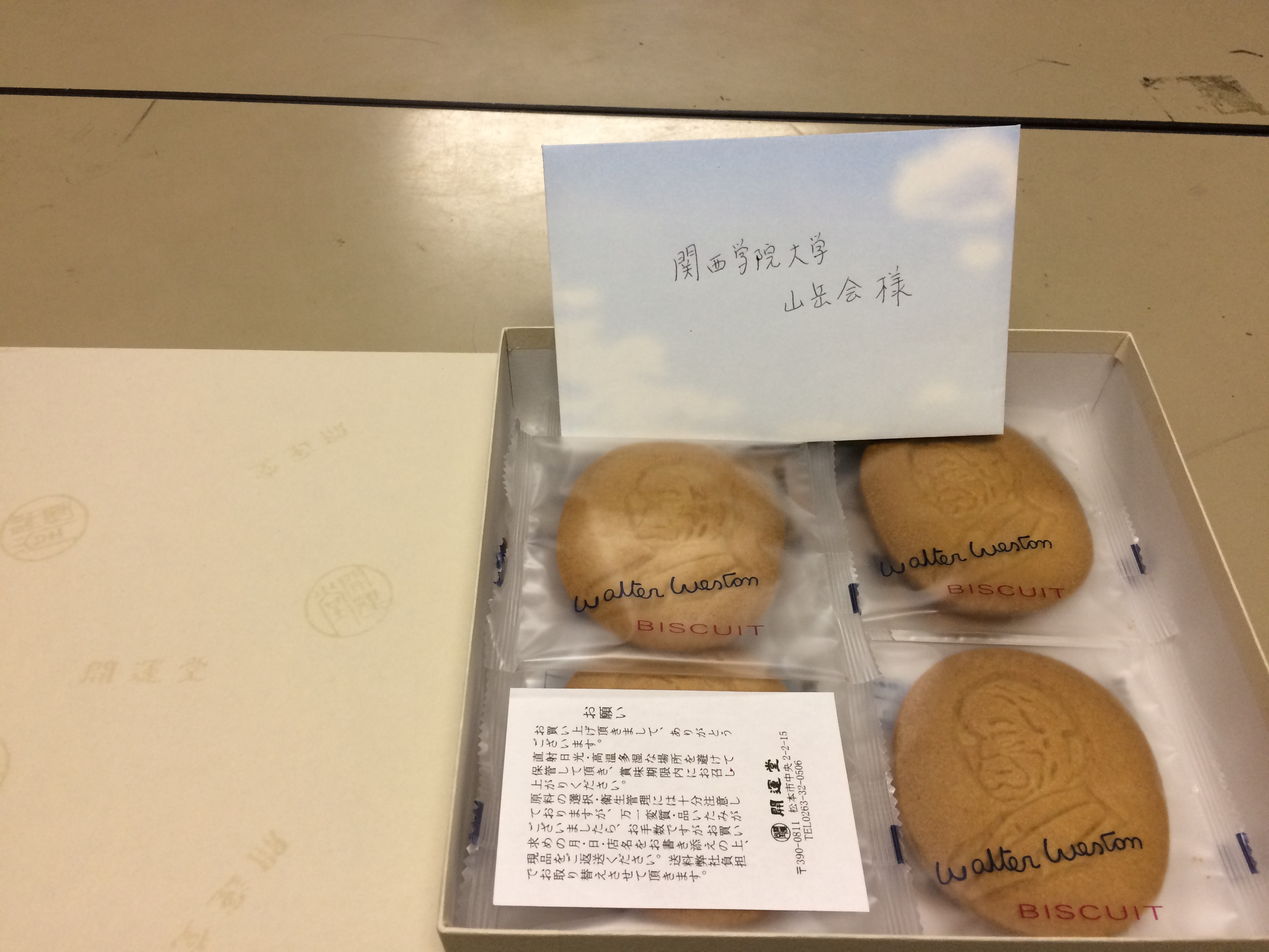山岳部部室に、松田屋さんより お礼状とお菓子が届きました。