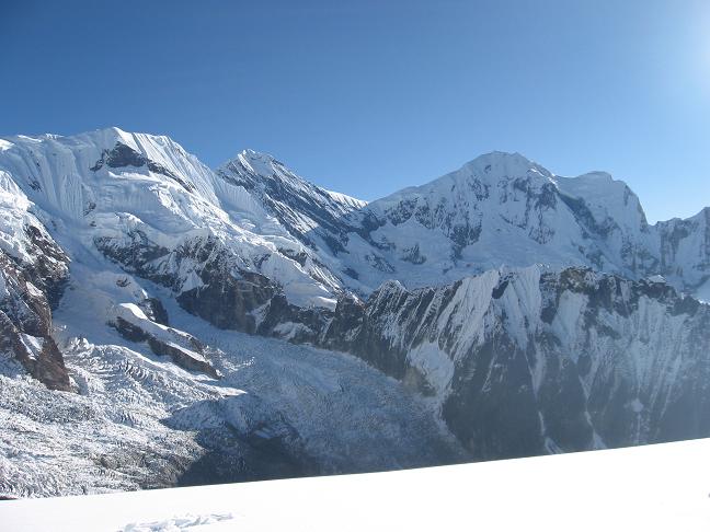PS:ポカラのヘワ湖近くの公園から嬉しいことに毎日のように左端にダウラギリの 巨体が、正面に上空に突っ立つように左から南アンナプルナ、ヒウンチュリ、 アンナプルナ本峰山群、マチャプチャレイ、アンナプルナW峰、U峰、ラムジ ュン山群が見え、その右にマナスル、P29、ヒマルチュリが見えていた。 写真集 ![]() 1.ABCから見たタルプ・チュリ(5,663m) 2.アタック・キャンプ(背景はアンナプルナ南峰) 3.ACから見たタルプ・チュリ 4.氷河越に見える稜線と氷の壁上部 5.氷河越に見える稜線と氷の壁 6.壁への取付き下部・シュルンド部 7.登ってきた壁をふりかえる(稜線上から) 8.稜線上、目前のタルプ・チュリ頂上 9.黒いタルプ・チェリの右にヒウンチェリとアンナプルナ南峰 10. アンナプルナ南峰と南峰の北峰 11.フアング(岩峰)とアンナプルナT峰(8091m) 12・登って来た壁の上、稜線上の三角の山(Singu Chuli)と 左にロック・ノアルと右にグレーシャー・ドーム 13・中央がガンガプルナ、右アンナプルナV峰 14・タルプ・チェリの左肩にマチャプチャレ 15・アンナプルナU峰(奥)とW峰(手前)・・・望遠使用 16.ガンガプルナ・・・望遠使用 17.アンナプルナT峰(中央奥)と南壁・・・望遠使用 18.フアングの岩峰・・・望遠使用 19. タルプ・チェリの肩にて、サーダーのアンプリ・ラマと共に 20.下山方向、ラクシ・ピークを見下ろす。上から見るとピークと言うより コブの様だ ポカラから望む巨峰群 21.ロッジの目前に聳えるマチャプチャレ 22.マチャプチャレとアンナプルナV峰 23.ヘワ湖畔よりダウラギリ 24.アンナプルナ南峰と右にアンナプルナT峰(手前の三角の山の左奥に) 25・ヘワ湖畔からアンナプルナ南峰とマチャプチャレ 26.左W峰と右U峰 |