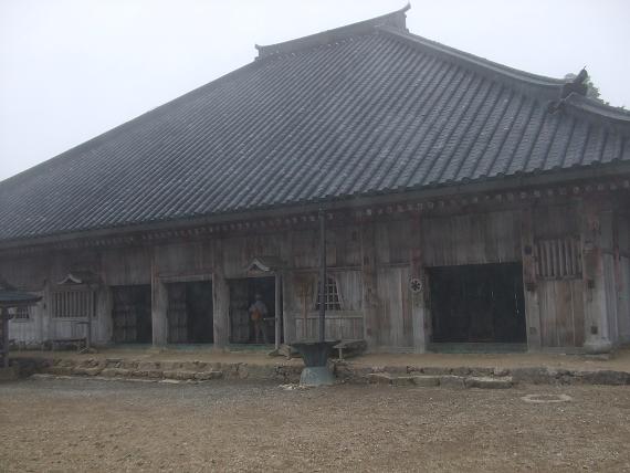 "大峯山寺"の閉門が16時と聞き空荷で200bほど石段を登り奥駈けの安全遂行を祈願する。これほど本格的な建物が標高1700メートルの高所に作られたのは恐らく日本では最高所の建造物ではなかろうか。