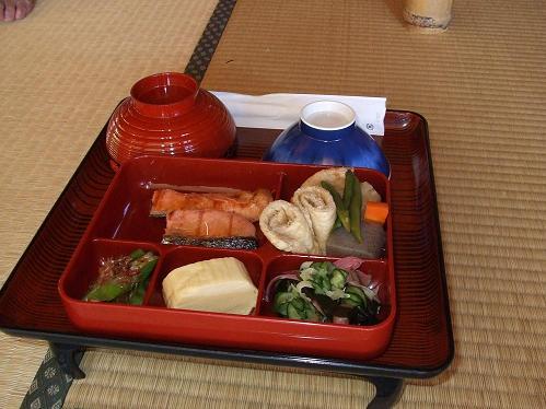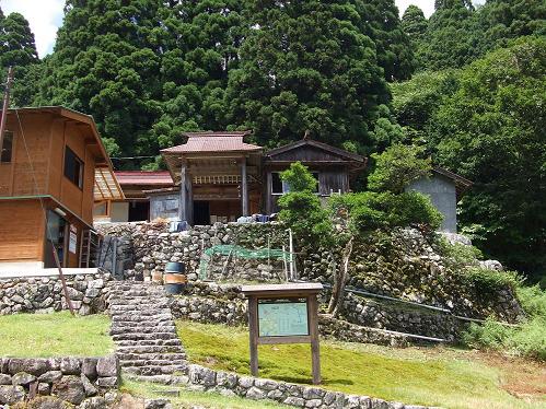 宿坊にもどると早速、入浴を勧められる。神崎師は「山での入浴は贅沢ではなく古くから霊山に入る前に身を清めるしきたりがある」と云う。浴槽から熱い湯を汲み頭から浴びさっぱりした心地で外に出ると温度計は19度を示している。猛暑の下界から心地よい冷気につつまれリフレッシュする。「必要以上のサービスはしない 広大さ、昔日をしのぶ」が宿坊の理念として壁に掲げられている。肯く。ビールで喉を潤しながら精進料理(登山者には鶏肉の煮付けあり)を賞味する。泊り客は我々3人のみ。神崎師より大峯の歴史の一端をお聞きする。師は写真家でもあり大峯をテーマに作品を手がけ個展を開いて活動しているようだが無私・無欲の徒で栄達とは無縁のお人柄とお見受けする。外にでて隣接の"桜本坊"の玄関前にカップ酒を持って下界を見つめている人と会話する。銀行を定年退職したあと、請われてこの宿坊でお手伝いをしていると云う。山を愛し大峯に精通し修験者や山岳関係者との交友も広く、話題は超人的な行者さんの話題や大峯の広大さなどが話題になる。「前鬼・小仲坊の五鬼助さんに今度酒を担いで会いに行くと伝えて下さい」と伝言をさずかる。